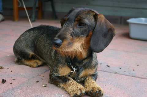 ist dunkel-saufarbener Rauhhaarteckel aus guter jagdlicher Zucht.